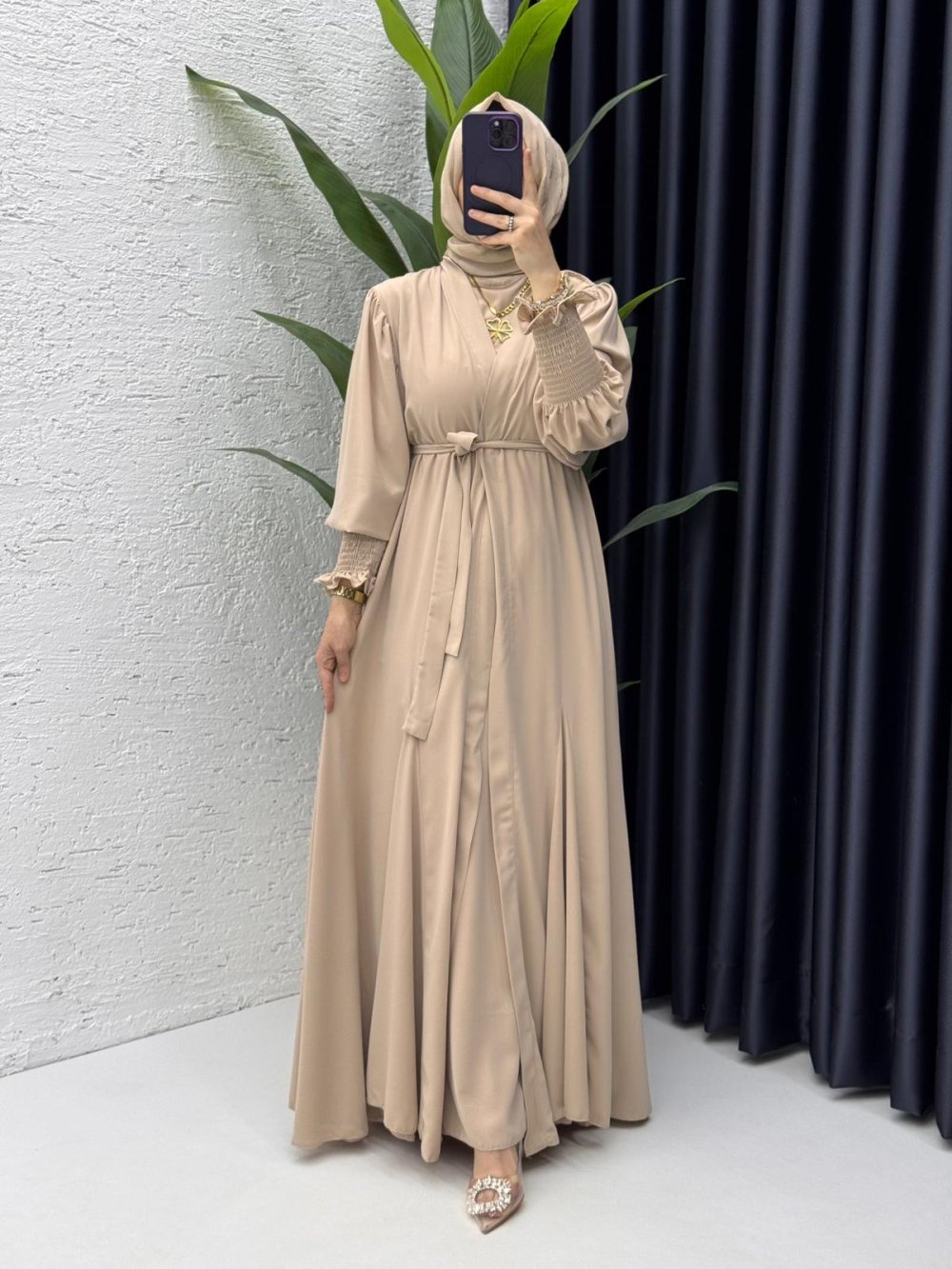 Taş Mihra Abaya Takım Tesettür Giyim Taş Rengi