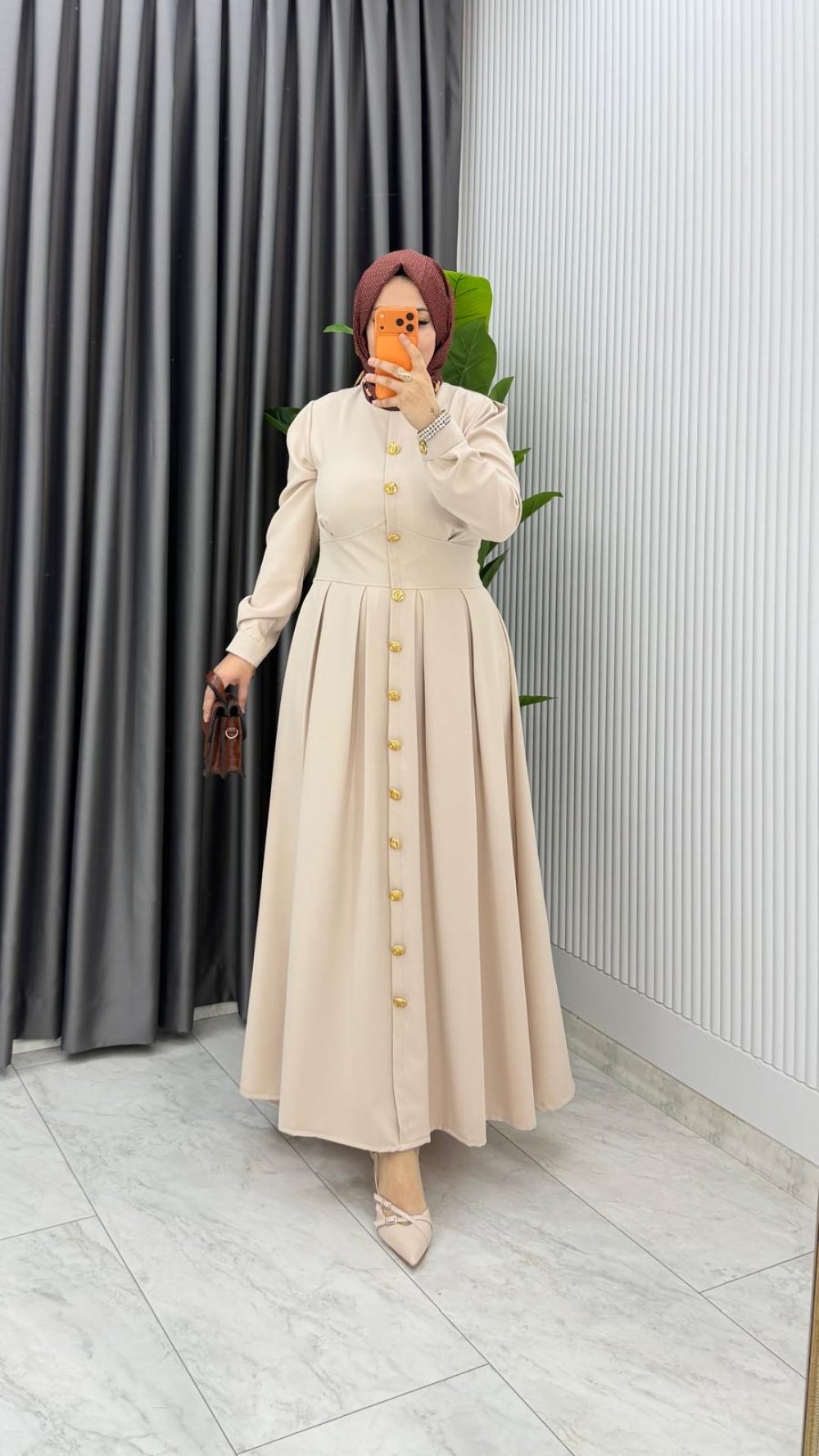 Taş Premium Asel Elbise Tesettür Giyim Taş Rengi