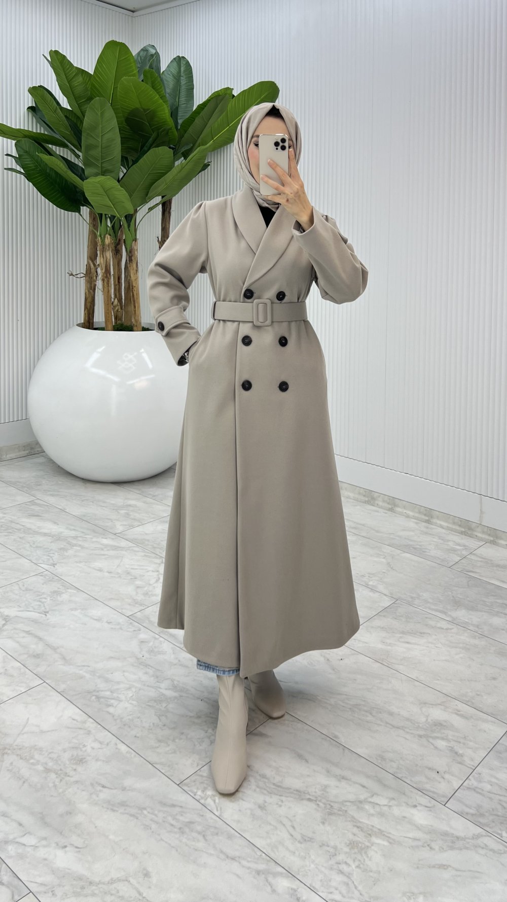 Taş Premium Kaşe Kaban Tesettür Giyim Taş Rengi