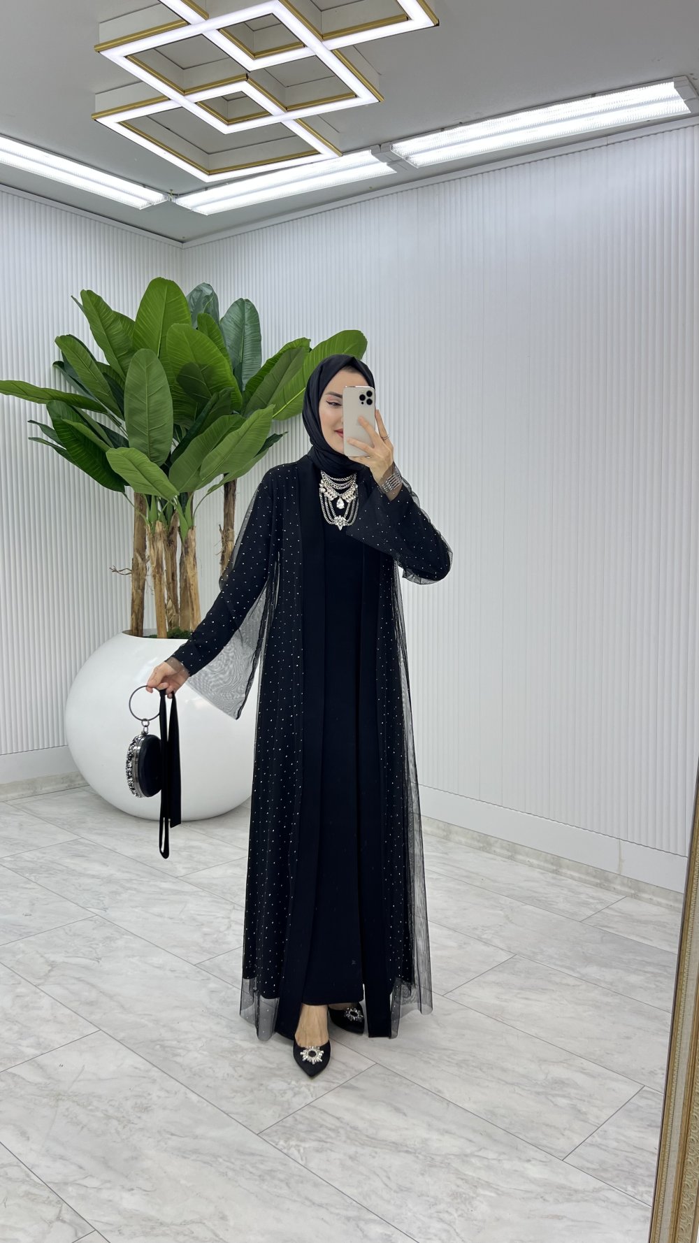 Taşlı Abaya Takım Tesettür Giyim Siyah