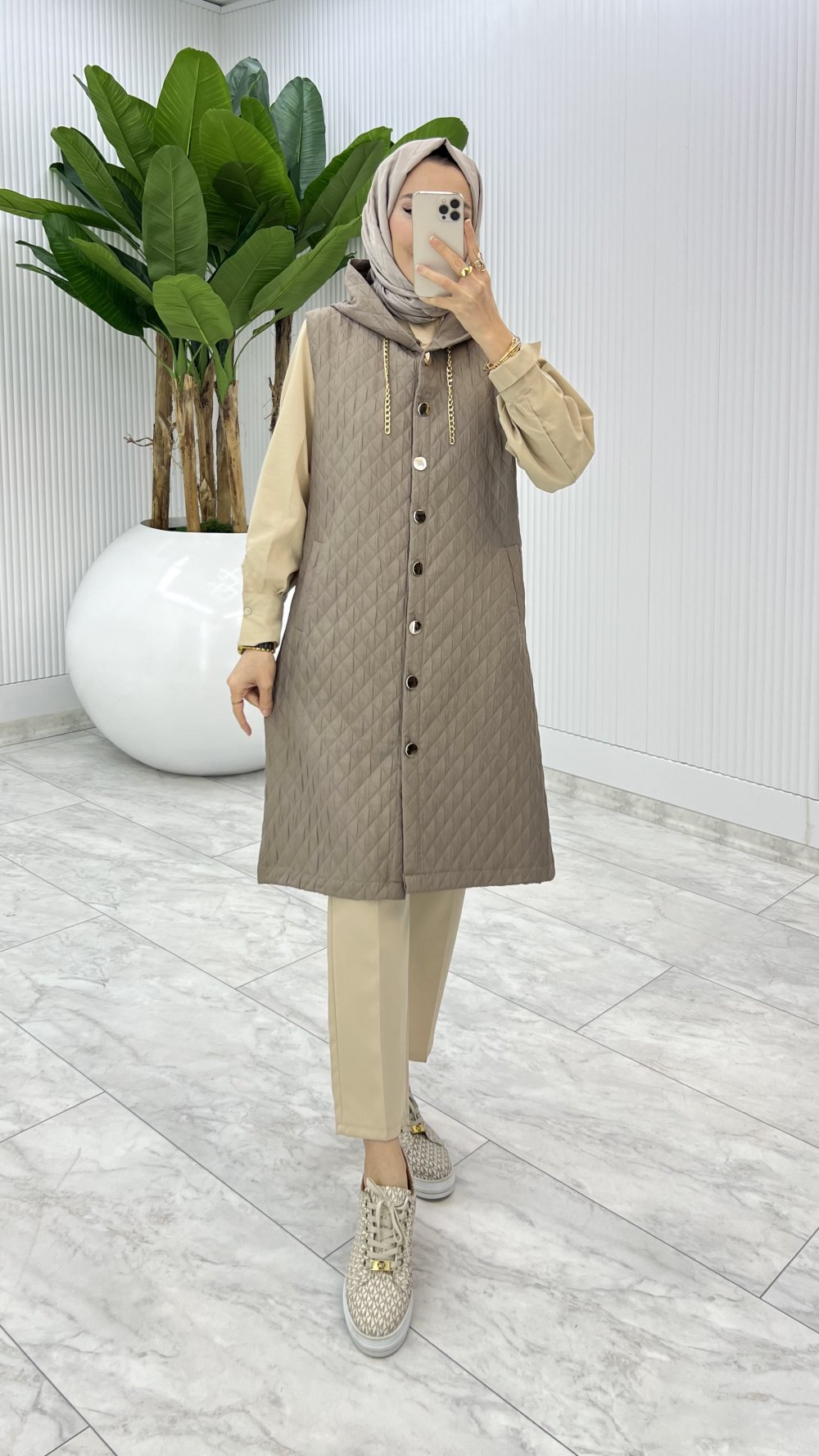 Toprak Kapitone Yelek Tesettür Giyim Toprak