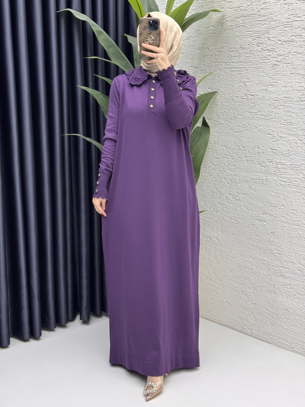 Yaka ve kol dantel detaylı hanım hanımcık Yasmin elbisemiz satışta