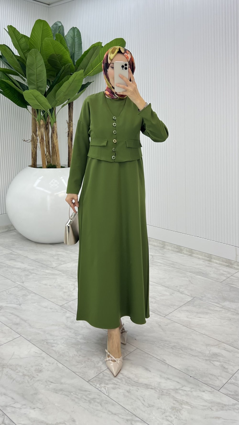 Yeşil Hasibe Elbise Takım Tesettür Giyim Yeşil